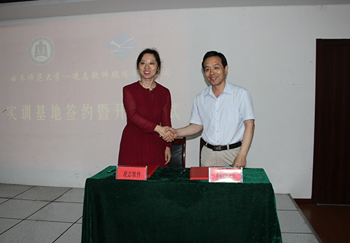 凌志軟件龐軍副總裁與曲阜師范大學(xué)信息工程學(xué)院領(lǐng)導(dǎo)簽訂了實(shí)訓(xùn)基地合作協(xié)議,并為“曲阜示范大學(xué)教學(xué)實(shí)訓(xùn)基地”揭牌。