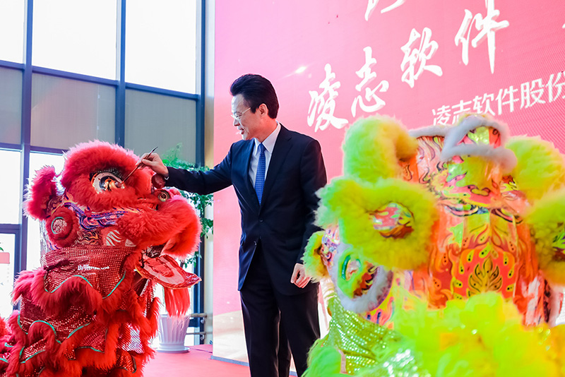 凌志軟件董事長(zhǎng)兼總裁張寶泉先生為瑞獅進(jìn)行點(diǎn)睛后,一段象征吉祥如意、事業(yè)興旺的舞獅表演,拉開(kāi)了凌志軟件喬遷慶典的序幕。