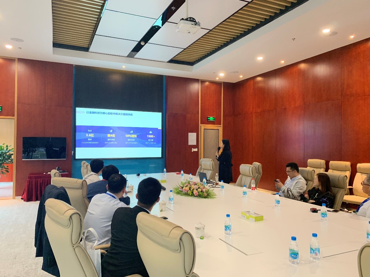 展會期間,金融機(jī)構(gòu)相關(guān)領(lǐng)導(dǎo)對凌志軟件等重點(diǎn)企業(yè)進(jìn)行了走訪調(diào)研。凌志軟件副總裁龐軍女士陪同參觀凌志大廈并作了匯報(bào)。龐總向到訪領(lǐng)導(dǎo)介紹了公司自成立以來的發(fā)展歷程、取得成就以及未來發(fā)展前景,重點(diǎn)介紹了凌志軟件以金融科技為導(dǎo)向的創(chuàng)新產(chǎn)品及解決方案。