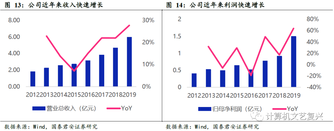 近七年收入利潤保持20%左右的復(fù)合增長。2019年公司實(shí)現(xiàn)接近6億元的營業(yè)收入,較2012年的1.82億有大幅提升,七年復(fù)合增長率接近20%。同時(shí)公司的利潤也保持快速增長,從2012年的不到4000萬利潤增長到2019年的1.5億,其復(fù)合增長率達(dá)到20.83%。