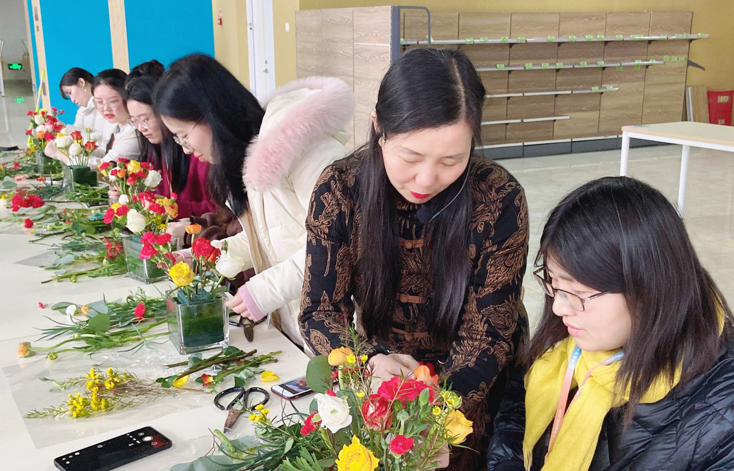 花藝老師通過現(xiàn)場教學(xué),讓大家欣賞了不同的插花風(fēng)格,詳細介紹了花材的品種、插花的原則和技巧,并指導(dǎo)大家如何進行選材和制作插花等。