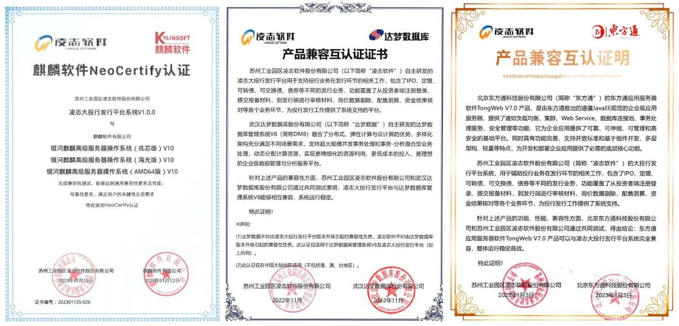 此前,凌志軟件投行業(yè)務管理系統(tǒng)、凌志軟件投行底稿管理系統(tǒng)均已通過麒麟軟件以及達夢數(shù)據(jù)庫的國產(chǎn)信創(chuàng)兼容性認證,標志著凌志軟件投行業(yè)務系列產(chǎn)品對我國信創(chuàng)生態(tài)建設的支持不斷加強。