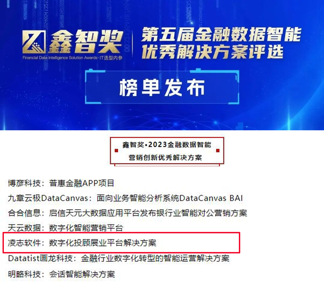 為展示金融企業(yè)數(shù)據(jù)管理和數(shù)據(jù)平臺(tái)智能化轉(zhuǎn)型成果,分享大數(shù)據(jù)和人工智能在金融科技場(chǎng)景的落地實(shí)踐,日前,金科創(chuàng)新社發(fā)布了《鑫智獎(jiǎng)·第五屆金融數(shù)據(jù)智能優(yōu)秀解決方案評(píng)選榜單》,凌志軟件數(shù)字化投顧展業(yè)平臺(tái)解決方案憑借其技術(shù)先進(jìn)性及創(chuàng)新性,榮獲“鑫智獎(jiǎng)·2023金融數(shù)據(jù)智能營(yíng)銷創(chuàng)新優(yōu)秀解決方案”稱號(hào)。